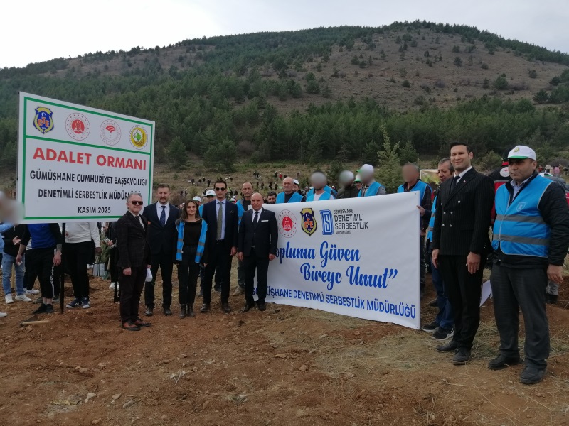 11 Kasım Milli Ağaçlandırma Gününde ilimiz Karşıyaka Mah. Şahin Tepesi Mevkiinde Cumhuriyet Başsavcılığı Denetimli Serbestlik Müdürlüğü tarafından oluşturulan Adalet Ormanında saat 11:11’de Cumhuriyet Başsavcısı Sayın Ziya Burak GÜRGAH’ın katılımıyla hakim ve Cumhuriyet savcılarımız, adliye personelimiz, açık ceza infaz kurumu personeli ve yükümlüleri ile müdürlüğümüzün 11 personeli ve 16 yükümlüsü eşliğinde 1.500 adet çam ve 500 adet huş cinsi fidan dikim etkinliği gerçekleştirilmiştir.