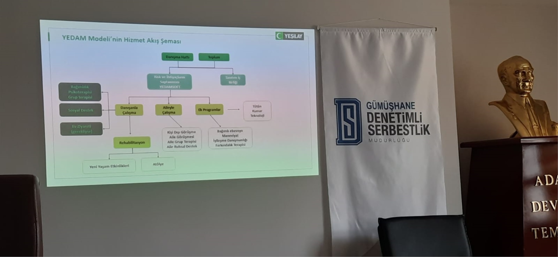 Gümüşhane Yeşilay Danışmanlık Merkezi personeli Sosyal Hizmet Uzmanı Fatmagül Bayrak Özer tarafından personelimize "Yedamın Tanıtımı, Bağımlılık ve Bağımlıya Yaklaşım" hakkında bilgilendirme semineri 04 Kasım 2025 tarihinde müdürlüğümüz seminer salonunda gerçekleştirildi. Desteklerinden ötürü Yeşilay Danışmanlık Merkezine teşekkür ederiz.